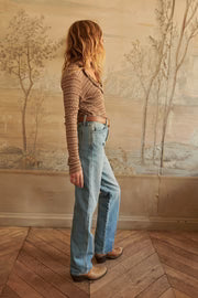 Made from our striped, ultra-fine pointelle knit, the long sleeve henley top is delicately crafted for the perfect, lightweight style. Made for layering, this top has a relaxed fit and featherweight feel that will soon become your everyday go-to with a feminine twist.